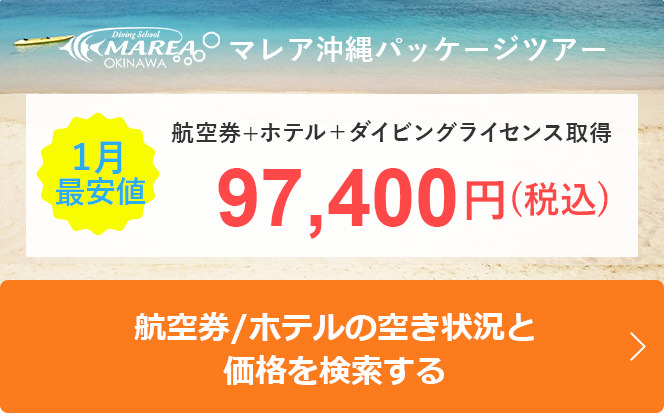 国内の主要空港を始め、全国各地からの往復航空券、宿泊予約、各種PADIスキューバダイビング講習・ファンダイビングを一括でご予約いただけます。