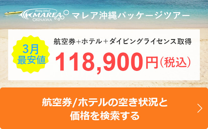国内の主要空港を始め、全国各地からの往復航空券、宿泊予約、各種PADIスキューバダイビング講習・ファンダイビングを一括でご予約いただけます。